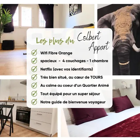 1-slaapkamer "Colbert' Appart" 1 Chambre - Refait A Neuf - Proche Cathedrale Saint Gatien ligt op circa 5-minuten loopafstand van de Kathedraal van Tours en biedt wifi voor zaken of vrije tijd. Tours Val de Loire luchthaven ligt op 10 minuten rijden, en Paul Bert busstop ligt op korte loopafstand van dit appartement van 45 m^2.